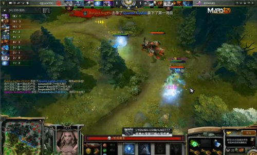 1血最终爆发在3分09秒,Quantic小精灵配合斯文加老鹿同RS的死灵龙冰女混沌终于是爆发了混战,最终以死灵龙拿下老鹿一血,斯文杀死冰女告终。