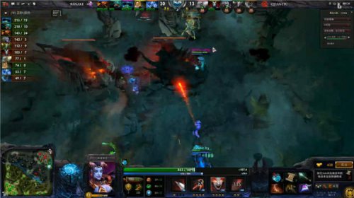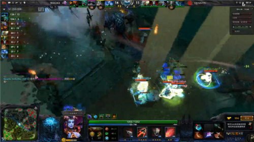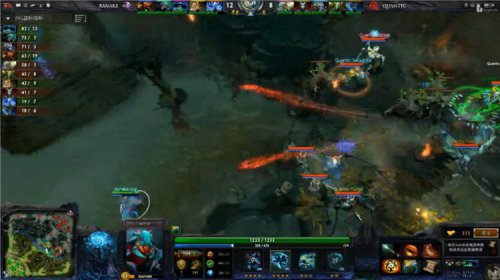 之后的RS并没有选择多BKB的出装同Quantic刚正面,而是通过无法限制的蓝猫和蚂蚁,无限的牵制Quantic的上下两路,并利用高伤害的蓝猫以及全屏支援大招的冰魂频频击杀Quantic的人员,Quantic陷入慢性死亡。