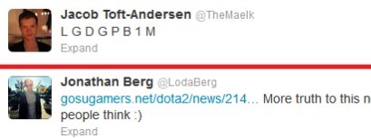 之前TPL组委会称AL队员God将加入LGD的消息,而最近丹麦著名的选手Maelk今天在自己的推特上留下了一段耐人寻味的字母,将疯传的中国战队即将引进欧洲DOTA2外援的消息扩大化。