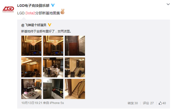 昨天晚上,LGD飞师父也发布了他们DOTA2分部搬家的消息,并奉上的新基地照片,温馨舒适的风格与IG土豪江景房风格各异。