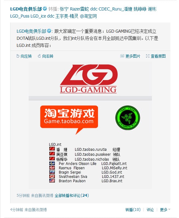 LGD.international人员终于全部浮出水面,国际化5人队伍出炉。
