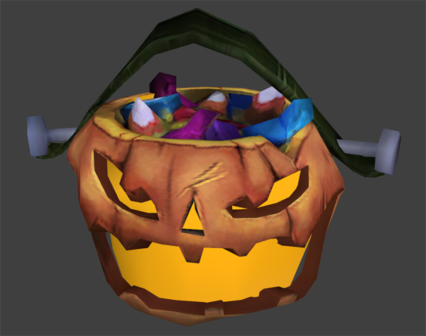 下面的这个装满了糖果的南瓜篮子,是从一个名为”道具_游戏性”的文件夹中找到的,它肯定并不是一个废弃的道具设计,可能和棺材一样,会出现在地图上,同时,对于这个道具还找到了相应的动画文件夹“南瓜篮子_给我糖”,同时还找到了大量的糖果贴图纹理,不过却没有找到糖果的模型,可见这个篮子和糖果肯定在万圣节游戏模式中扮演着重要的角色。这个文件在指向了“万圣节肉山”文件夹的同时,还指向了在这个文件夹中不存在的一个文件:“肉山万圣节涂色”。