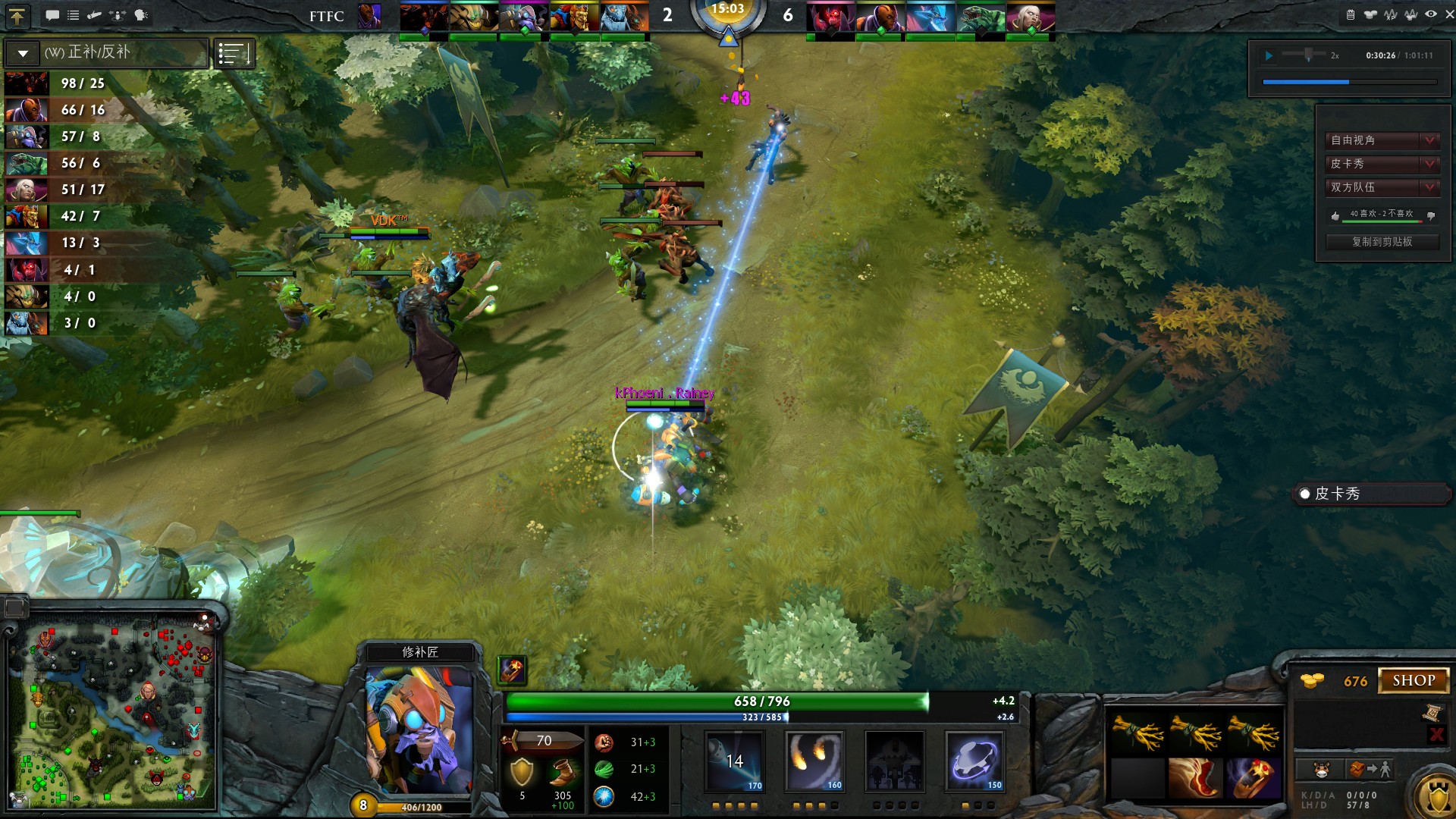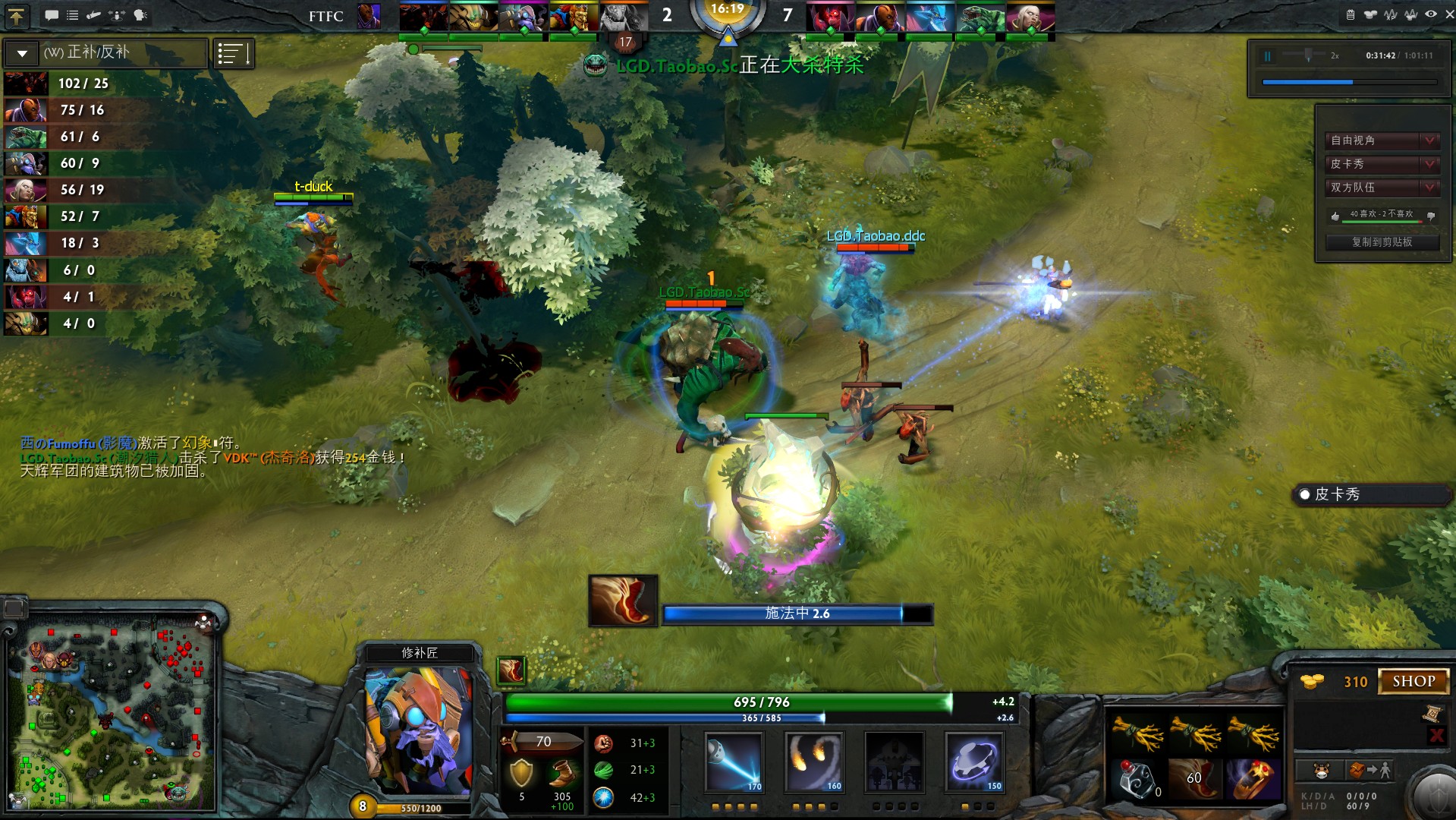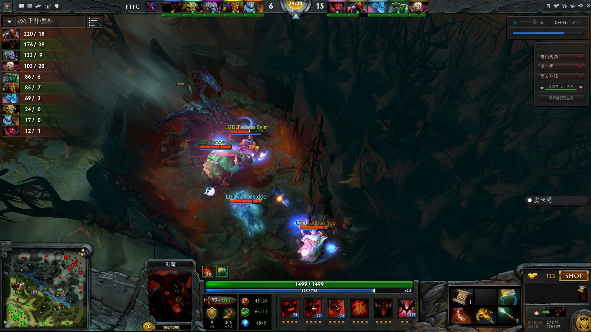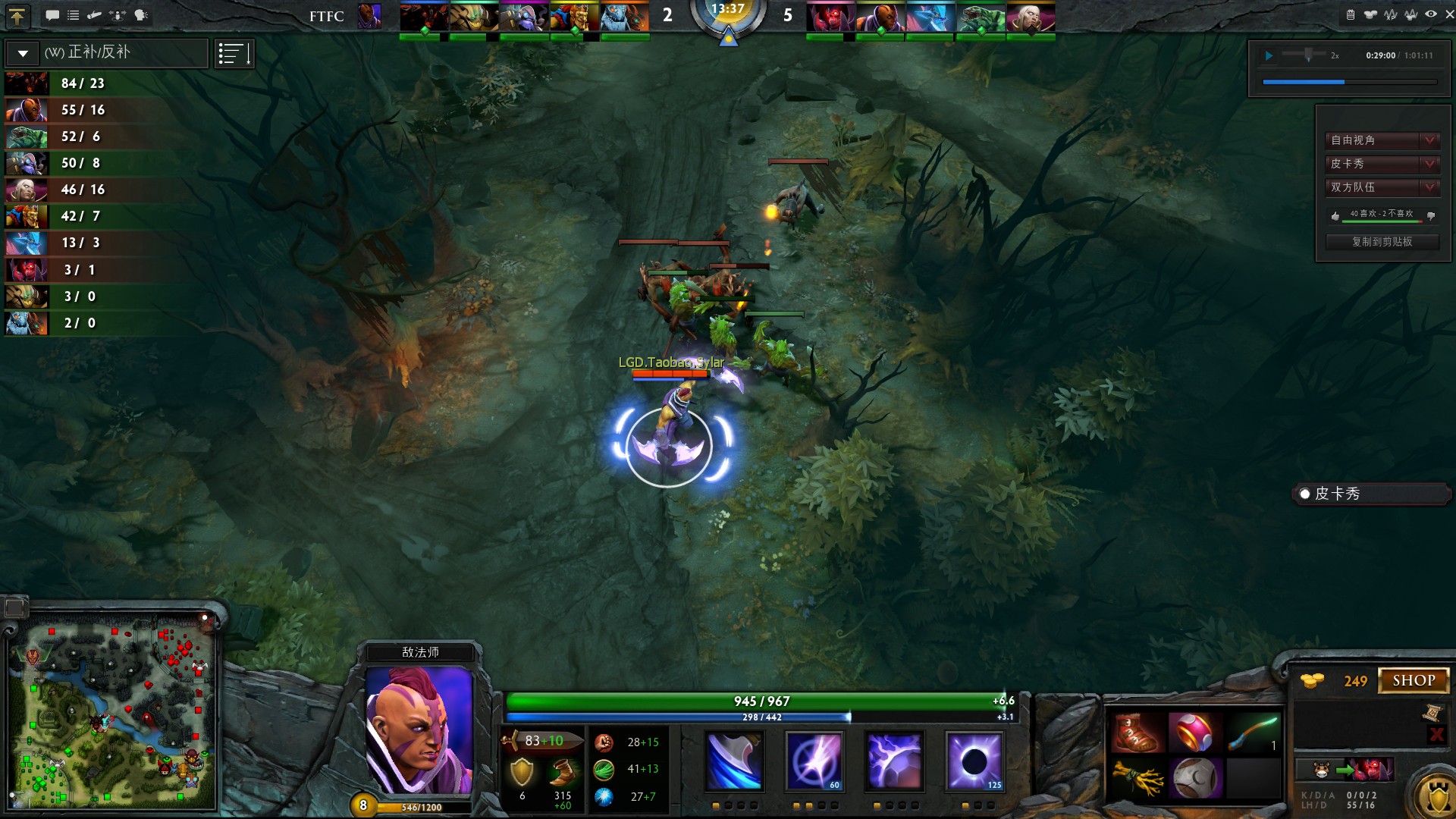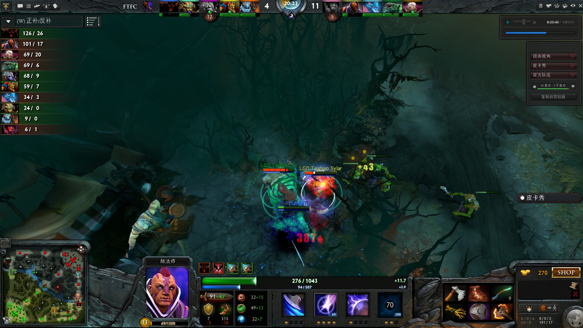 之后双方频繁的游走GANK,但是LGD明显效果显著,拿下了FTFC几个人头,敌法师发育非常顺利。