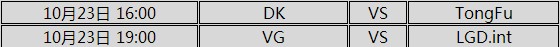 10月23日,WPC-ACE联赛第9轮正式开打。在率先进行的两场比赛中,DK将要遭遇劲敌TongFu的挑战,VG与LGD.int将要为了季后赛资格展开角逐