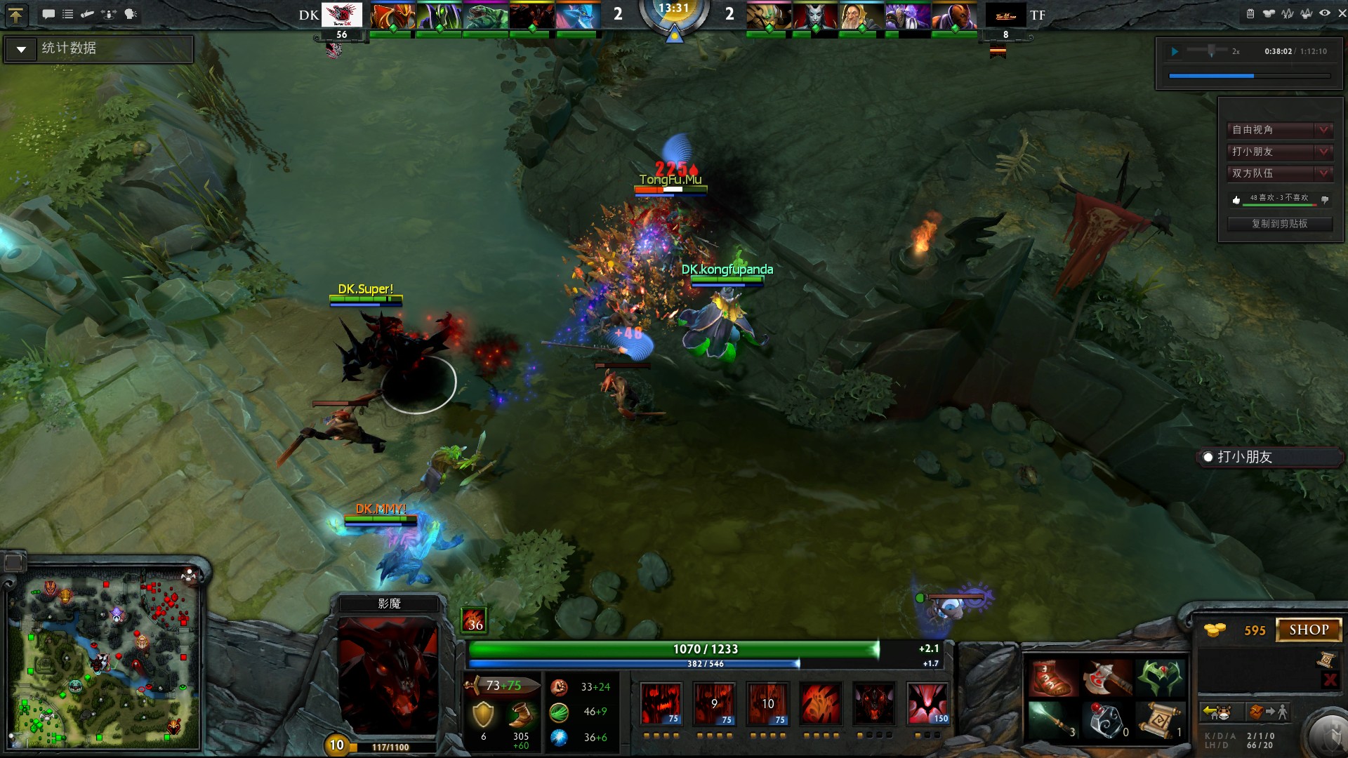 32分钟,龙骑士出到了龙心,利用隐到击杀了LONGDD的沙王。DK全面占优。