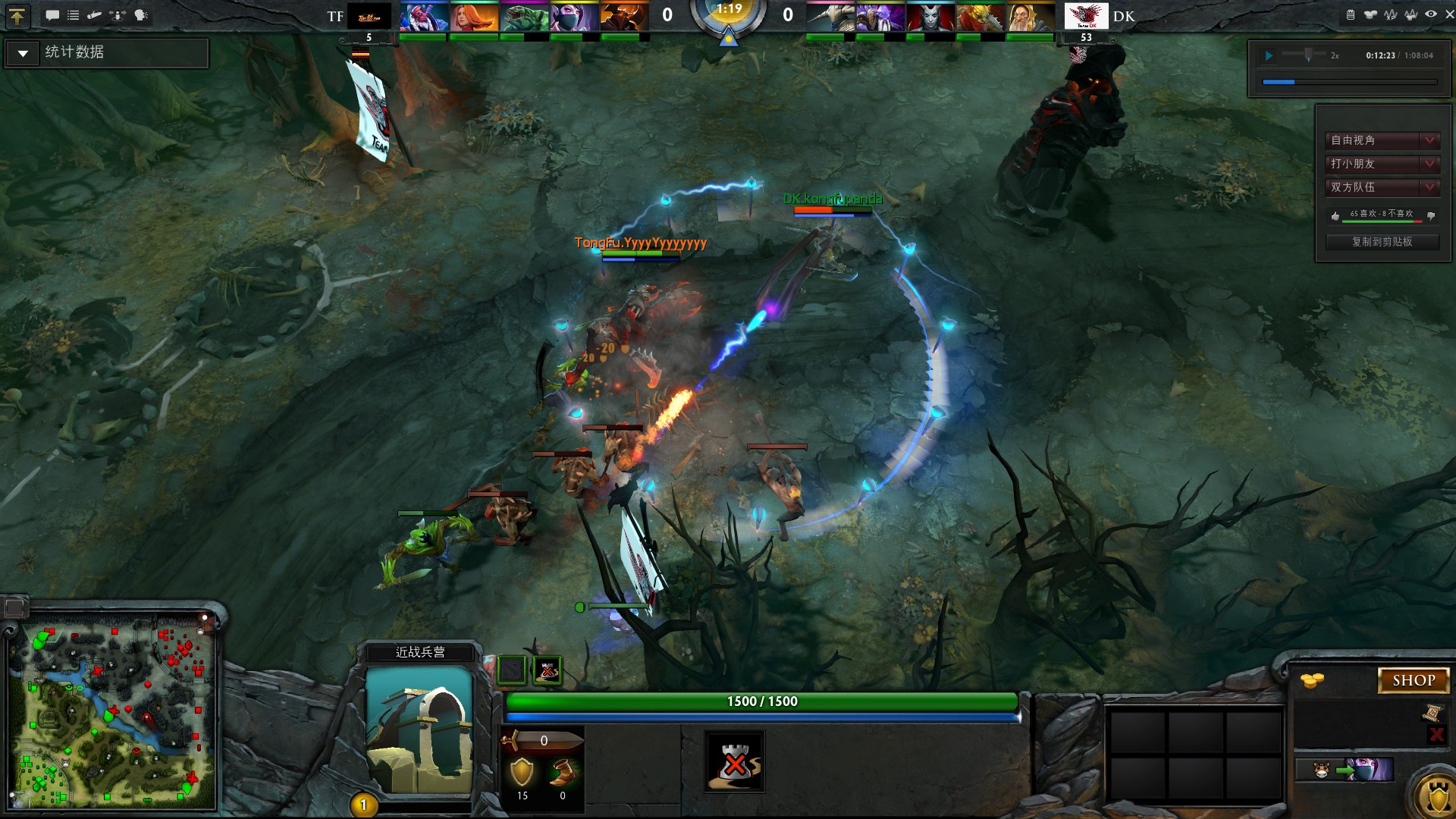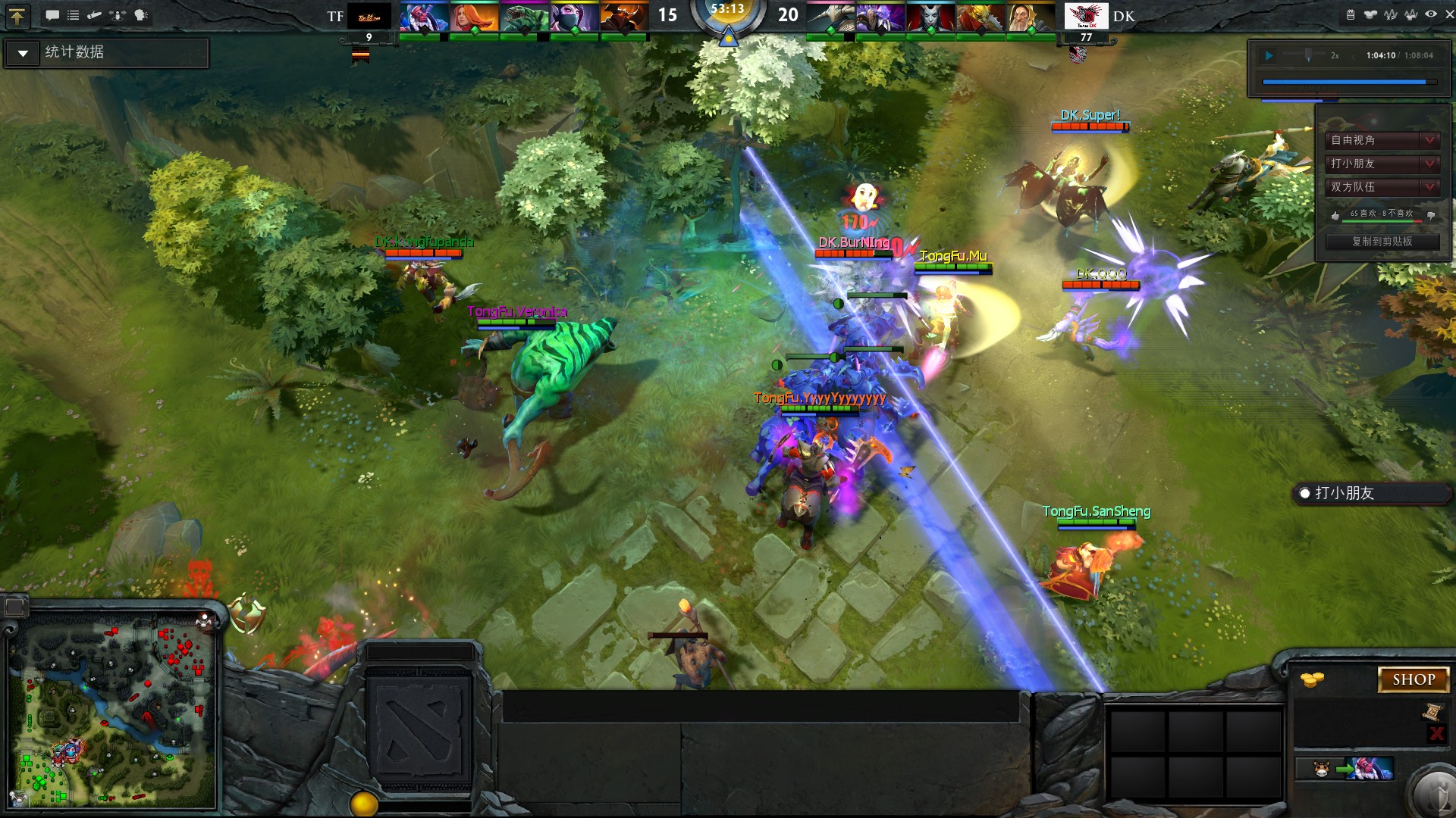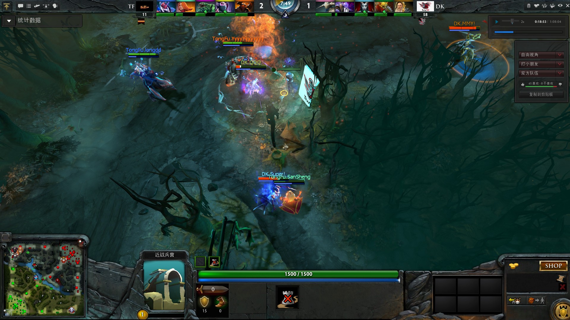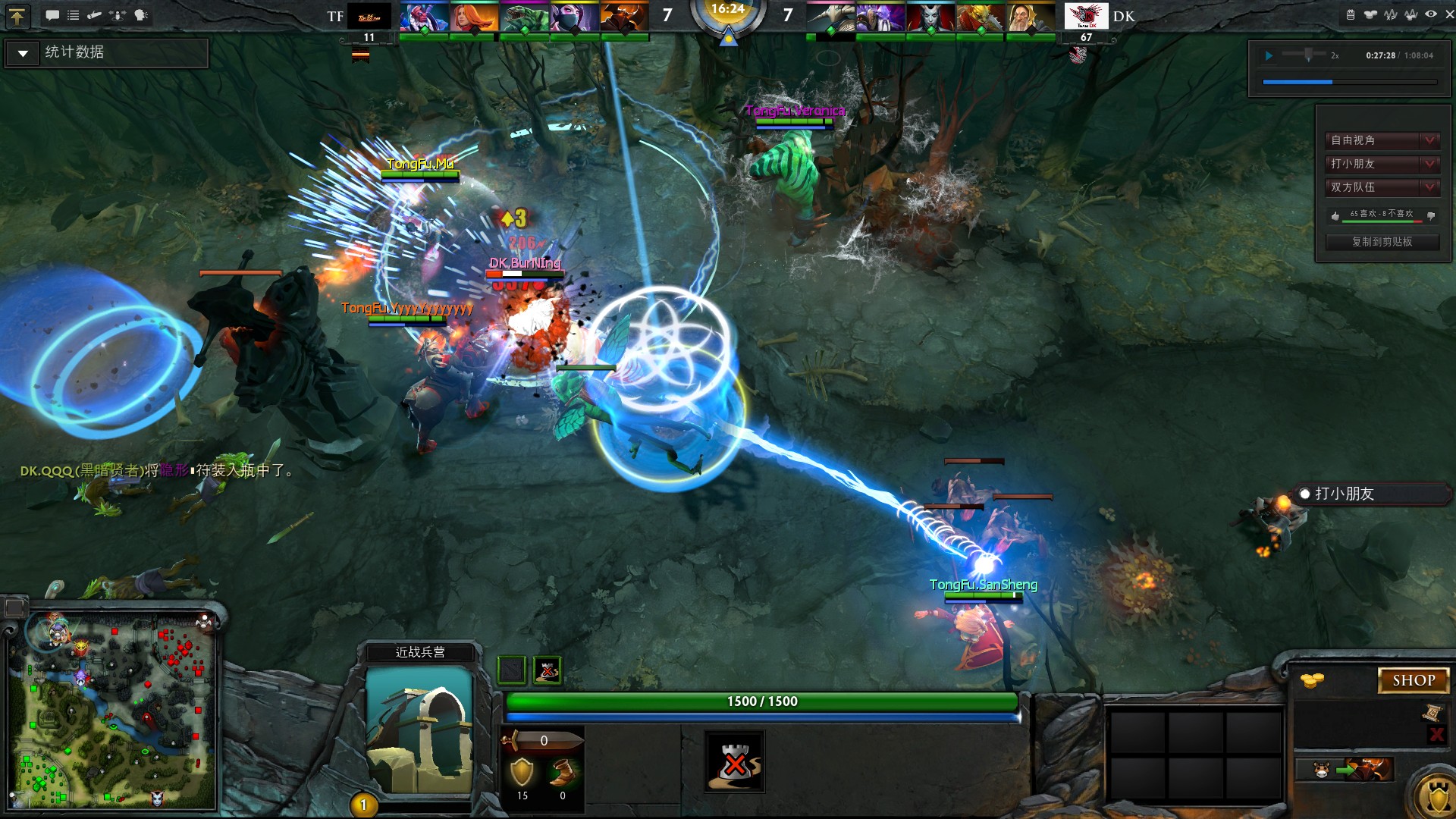 阵容方面,同福在控制方面略有不足,但是AOE充足,守塔比较轻松,如果能让敌法师刷起来,到后期应该是可以抗衡影魔和龙骑士。而DK方面整体上比较合理,在影魔和龙骑士出了BKB后,团战正面将会比较有优势。