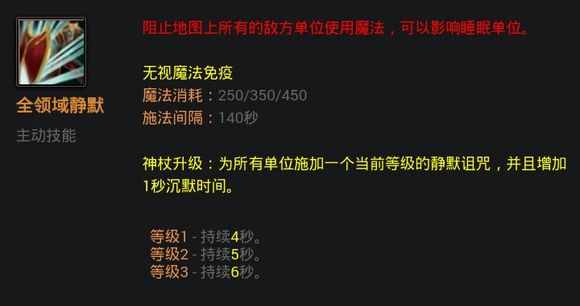 经过教授统计,即便是后期英雄,面对沉默大也很难有所作为,幽鬼没法降临,猴子没t和w造幻象慢不少,而pa,敌法,sa这种闪烁近战则几乎没有了战斗力。各路法师就更不用说了。