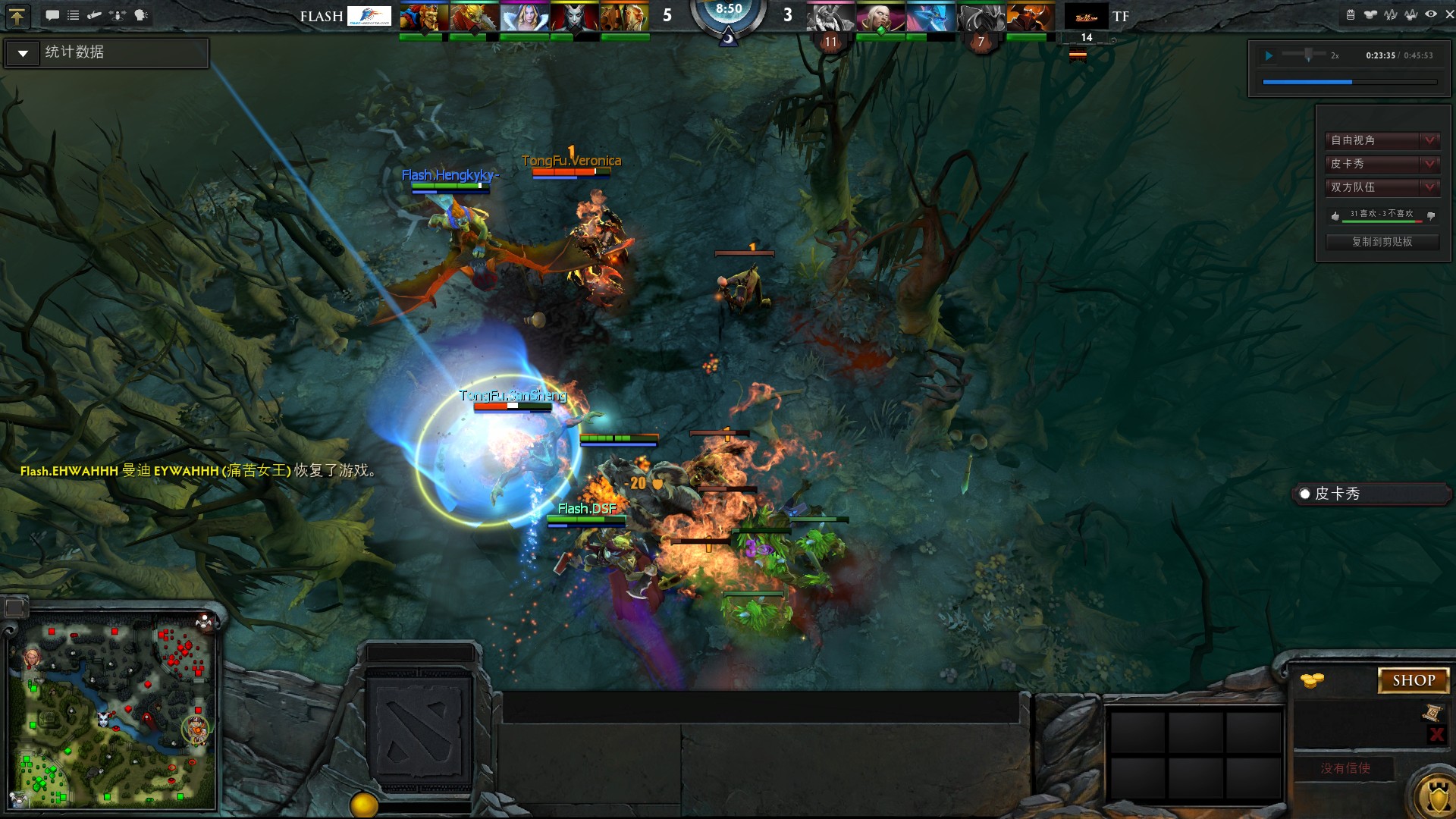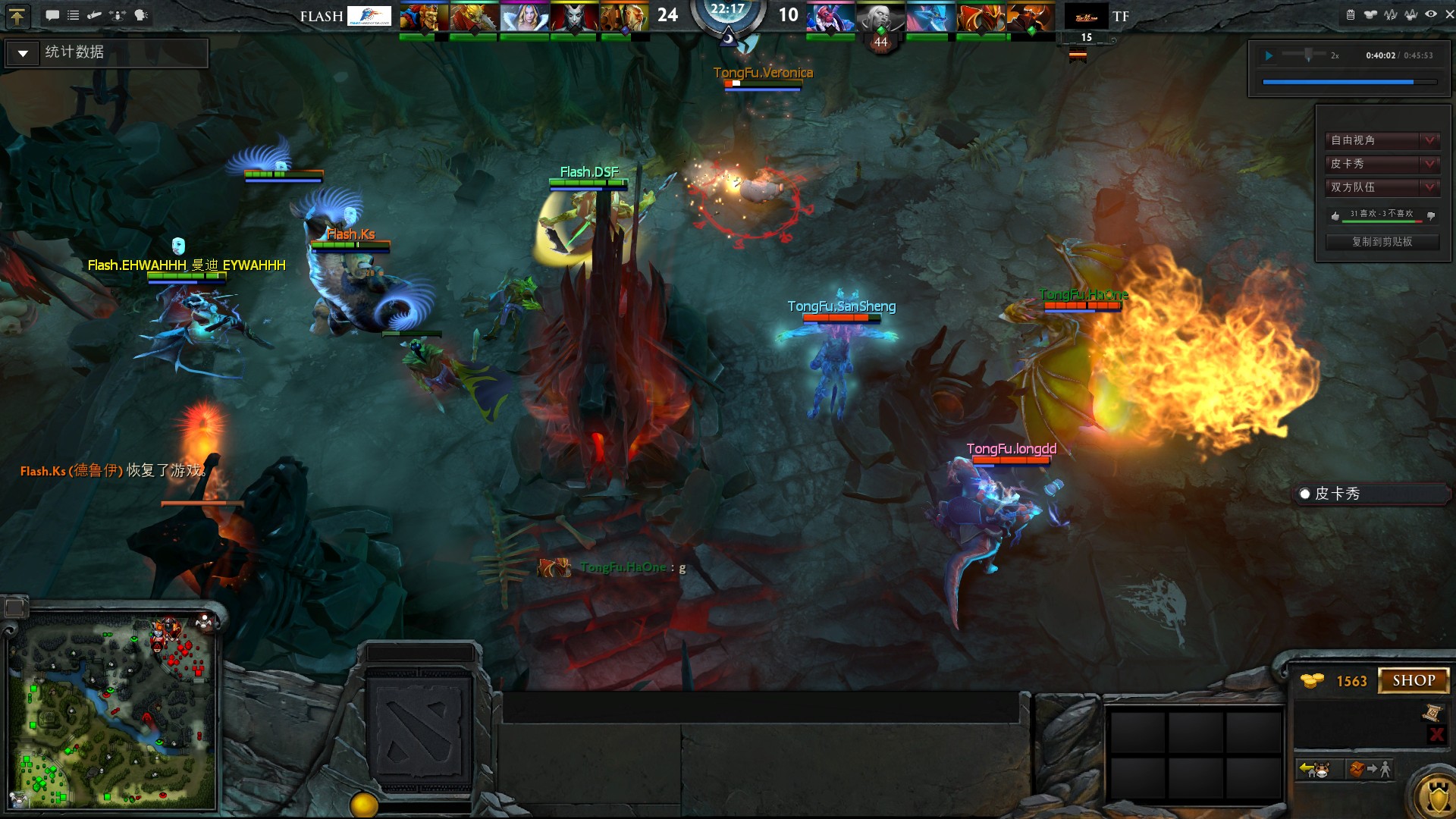 19分钟,Flash推进同福中路一塔,Flash依靠团队装备优势,打了同福一波小团灭,之后Flash打掉Roshan,同福集合过慢,阵型出现问题,再次被小团灭,此时的同福基本是胜利无望。