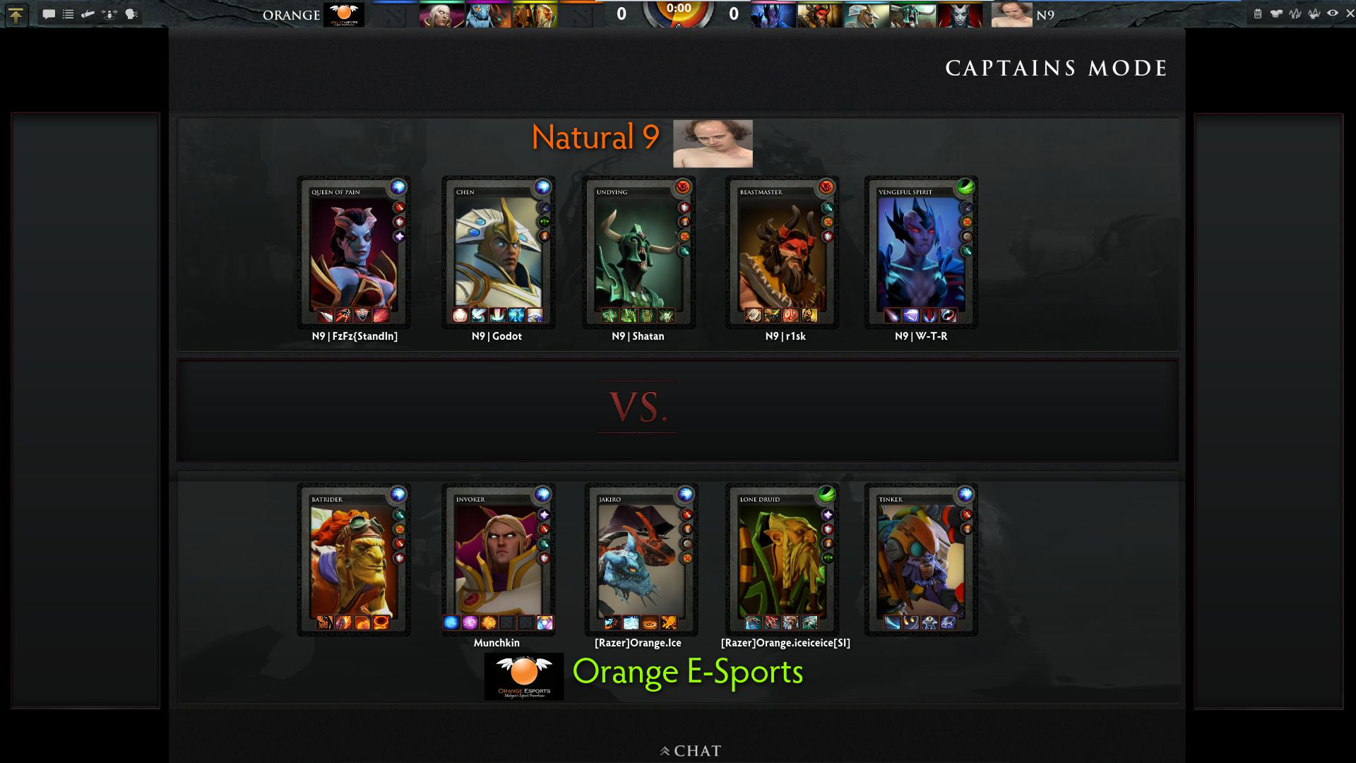 这次N9选择了一个推进阵容,目测应该不会进入消极节奏,而橘子也同样选择了推线强力的TK,节奏要快起来了。