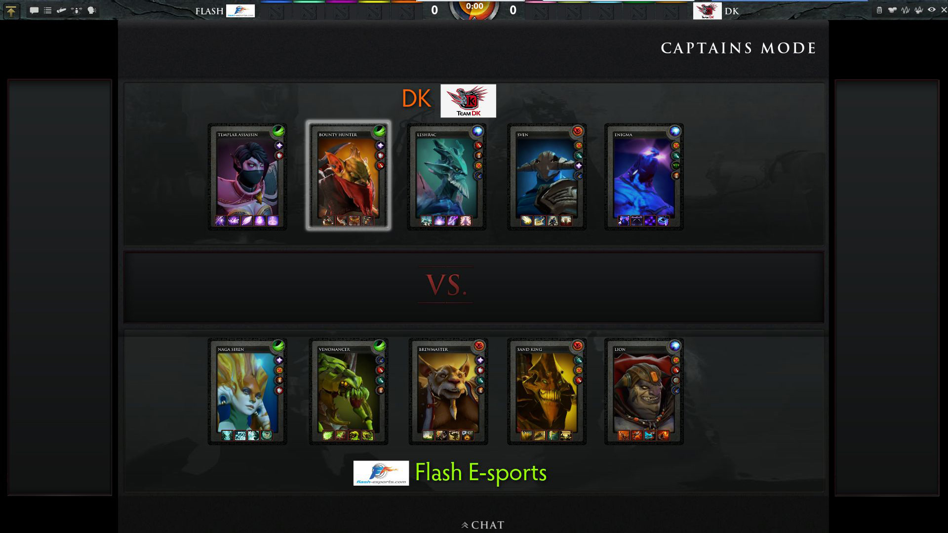 DK果断的再次ban掉曼迪擅长的女王,非常腹黑的选择了上一盘Flash的赏金和圣堂刺客,B神则是选择了Sven,曼迪最终拿到酒仙。