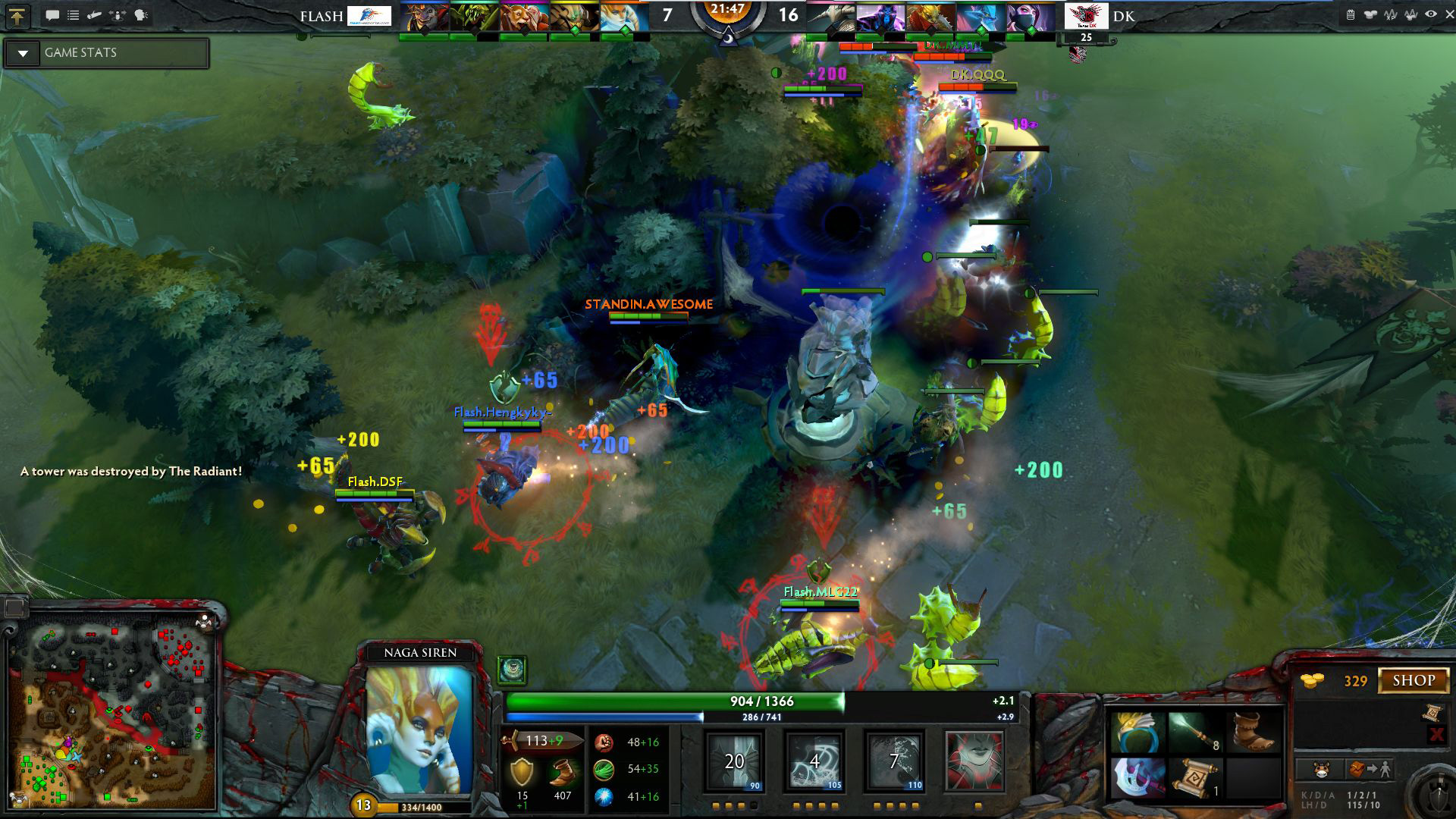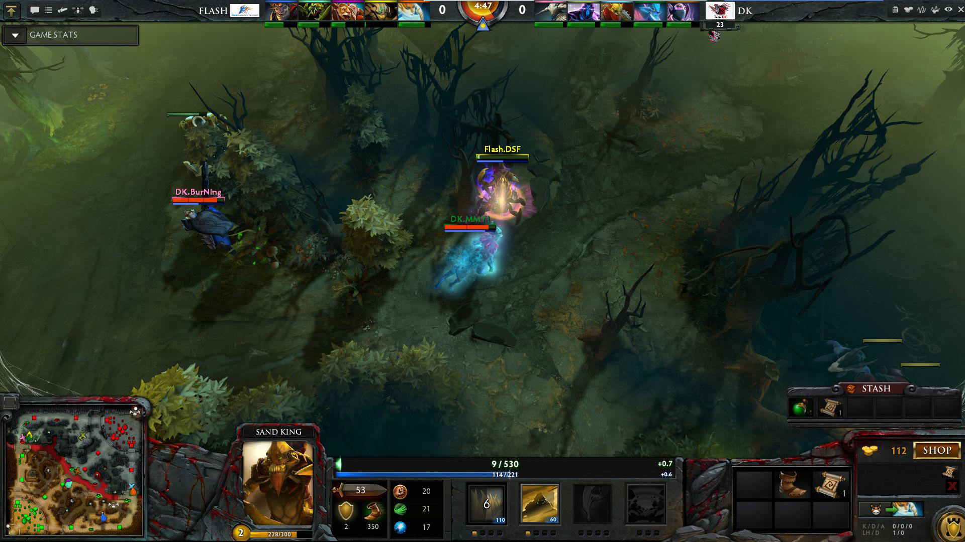 Flash打的十分顽强,被小团灭后并没有打击到他们的信心,近15分钟时,吃了影身符的曼迪酒仙指示队友前来包夹DK,自己绕后先手秒掉了团战威胁最大的谜团,但是DK立刻组织起了有效的反击,Flash队员接连被反杀,沙王赶到,漂亮的切入和大招让DK全吃伤害,但是Flash这边输出明显不足,沙王在灭掉DK两人后自己也阵亡,Flash 4人死亡再次被小团灭,小娜迦开出大招回城撤退。