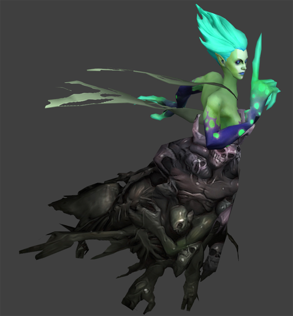 敌法师和风行者的套装都有自定义的动画,与此类似,死亡先知的万圣节风格套装“尸骸室女”套装也有自己的自定义动画。