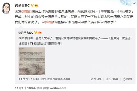 11月6日晚上,DC老师微博爆出自己人签证被拒。