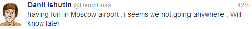 按照相关当事人的推特更新来看,情况目前很不妙。Dendi自嘲“在莫斯科机场玩的很愉快,似乎不能去任何地方了。”具体情况还要等待有关方面的消息。