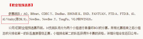 IG疑似收购DK.S 新队更名IG.Vitality
