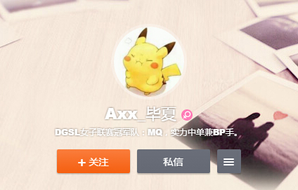 Axx:我之前主要做陪练啊,比赛的时候就前段时间打了个dgsl女子联赛,拿了个冠军和一个辉夜杯小组第二 。