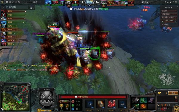 FTDB抓掉**后想打肉山,**直接买活赶到肉山开团,开启BKB抽影魔的攻击,影魔BKB摇完大后残血TP回家,其余四人依靠牛头和痛苦之源的控制将VGP几人风筝致死,LION临死前的一个穿刺强行拼死飞机,FTDB2换5。