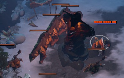 大石头在被击杀后会分裂出小石人而小石人死后还会继续分裂出小小石人,虽然血量上减少了很多但是每次分裂后的石人攻速都会狂增不注意清怪的话很容易被A死。本关需要5个队友迅速集中一起清理石人否则一旦聚集到基地前茫茫多的石人带来的最终是团灭。