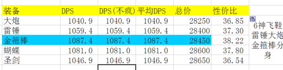 为了配合圣剑我们肯定要有飞鞋、圣剑、大炮、分身,那么剩下两件如何选择才会有最大的输出效果和爆击概率呢?!