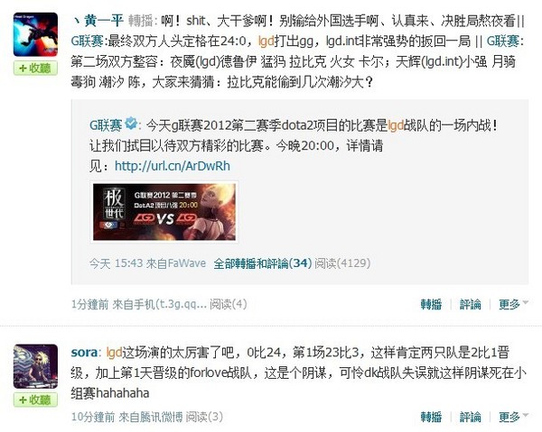 - (2014-12-11) G联赛2014赛季DOTA2总决赛前瞻:新老对决