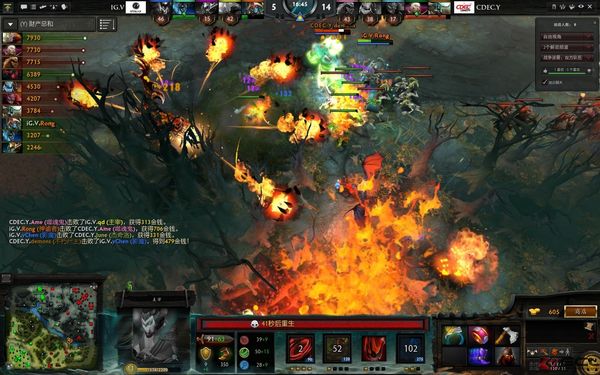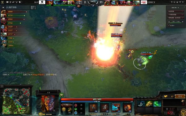 21分钟卡尔3级书抱团直推下路高地,隐刀影魔和隐身小强在三级书面前根本不敢上前,眼睁睁看着自己的高地被双头龙液态火慢慢磨到,硬着头皮强打一波被团灭后打出GG。恭喜CDEC.Y2比0战胜IG.V。